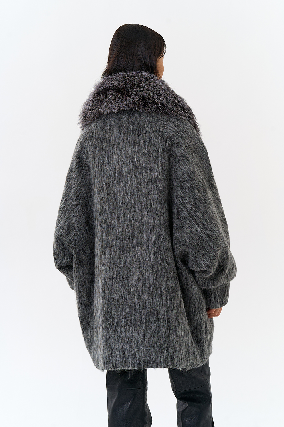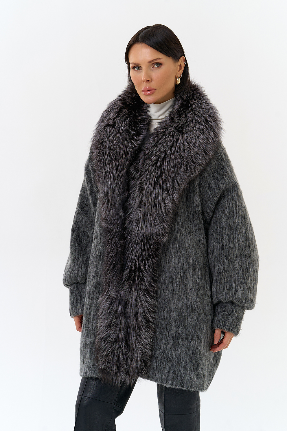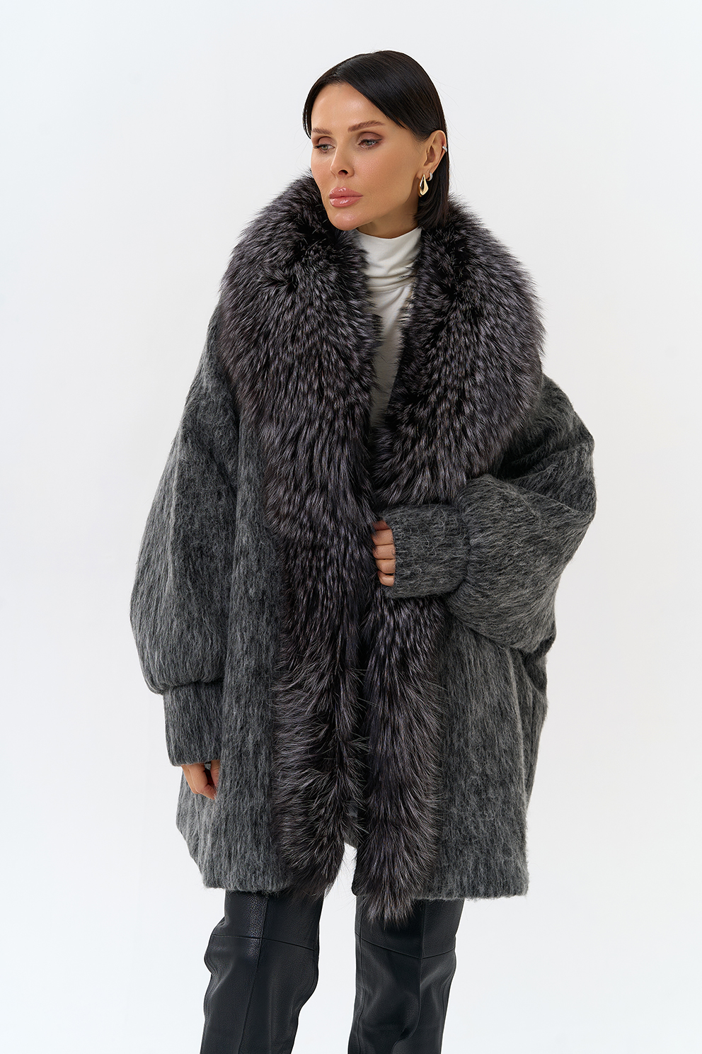 Крой воротника - V-образный, отделка чернобурка