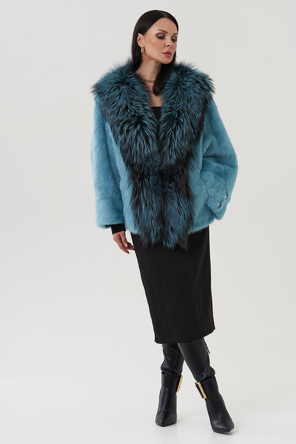 Тип ворота - V - образный воротник , отделка чернобурка