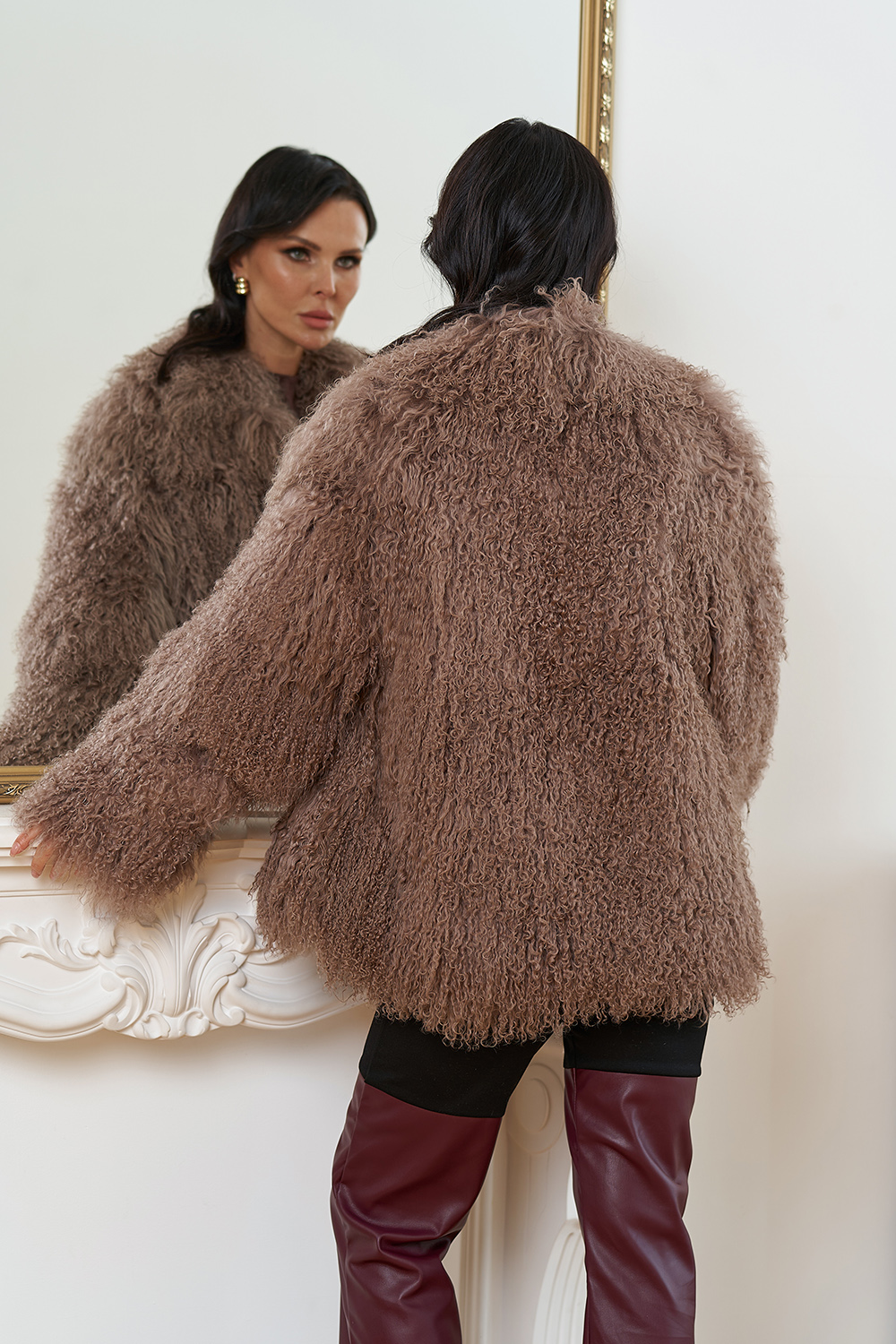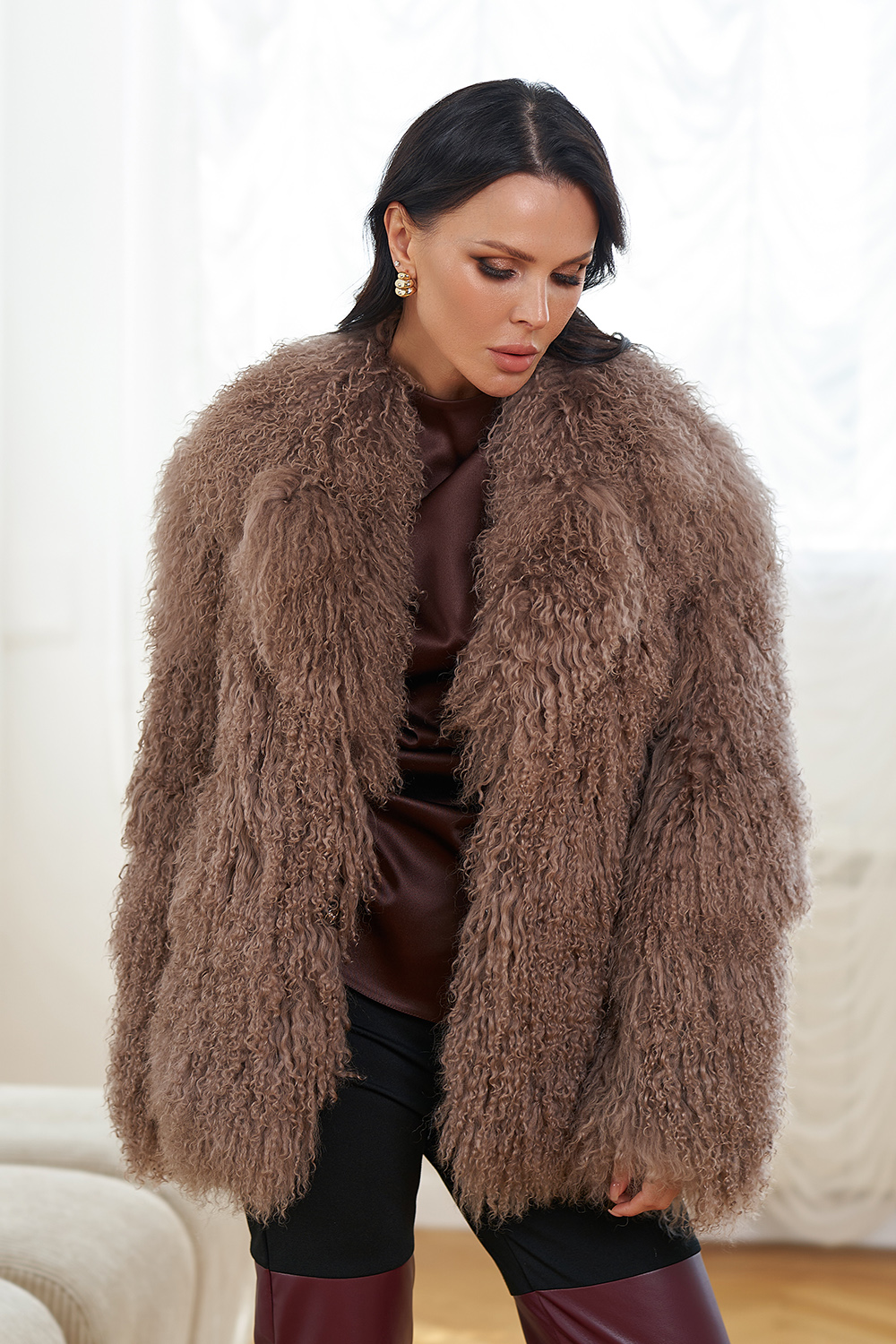 Женская шуба из меха ламы (коричневый)